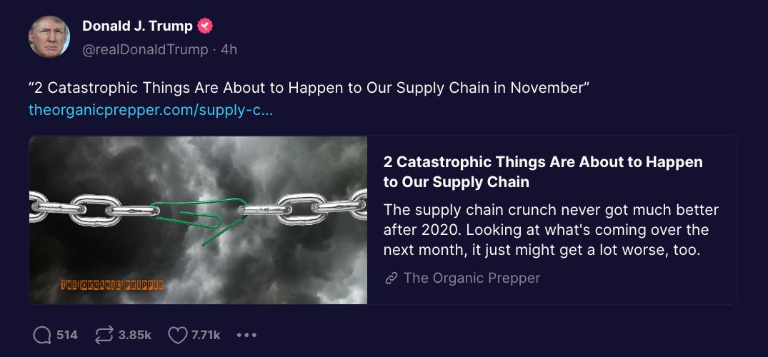 45 posted a link to a prepper website with some warnings about supply chains in November.