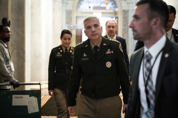 Director of the National Security Agency (NSA) and Commander of U.S. Cyber Command General Paul Nakasone arrives at the U.S. Capitol on June 14, 2022 in Washington, DC. Nakasone has advocated for the White House not to change DOD's cyber operations' authorities.