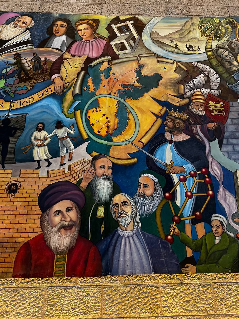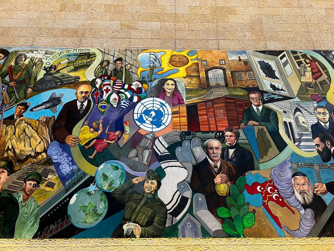 The mural tells the story of the Jewish people, starting with the creation of Adam to the formation of the nation of Israel, its exile, the rise of Zionism and the establishment of the modern state.