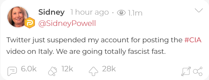 Re: Sidney Powell stuurt Parley uit reden Twitterban
