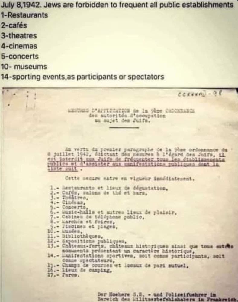 July 8,1942. Jews are forbidden to frequent all public establishments