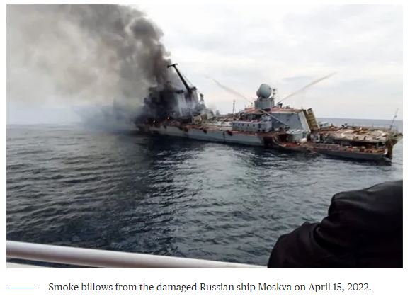 A guided missile cruiser carrying a crew of 510, the Moskva was the flagship of Russia’s Black Sea Fleet. It sank on April 14 after being struck by two Ukrainian Neptune anti-ship missiles, U.S. officials said. Moscow said the vessel sank after a fire. The Moskva was the largest Russian warship sunk in combat since World War II. American officials said there were significant Russian casualties, but they don’t know how many.