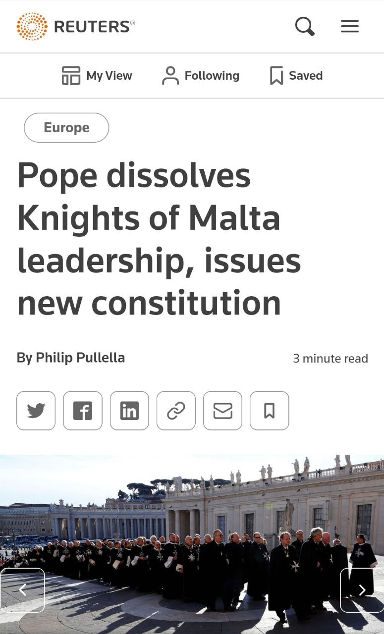 Pope Francis on Saturday dissolved the leadership of the Knights of Malta