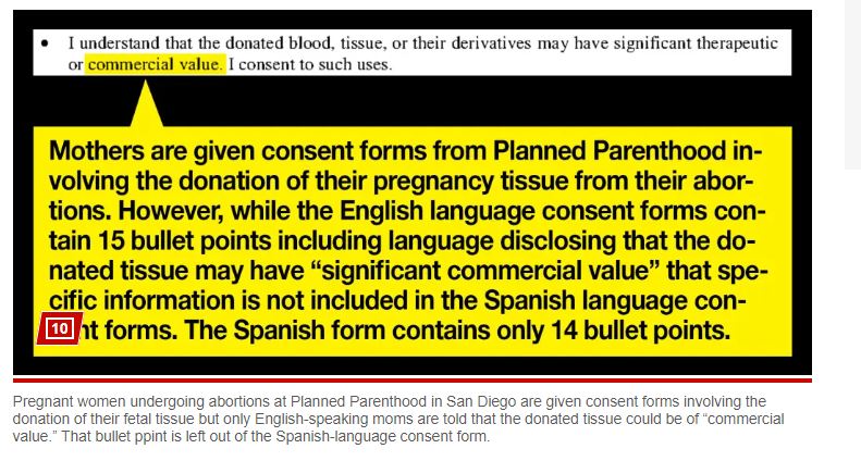 “I don’t understand why Planned Parenthood…. and UCSD felt that Spanish speaking mothers did not deserve to know that the body parts of their aborted children would be ‘commercialized” while English speaking mothers did deserve to have this fact disclosed to them,” Daleiden told The Post.