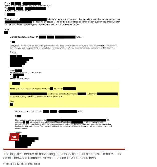 The emails discuss fetal tissue like any other commodity such as sugar or rice, nonchalantly negotiating for fetuses up to 23 weeks old from elective abortions.
