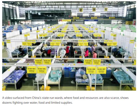 Even Chinese residents who are asymptomatic or have a mild infection are isolated from non-infected people in the make-shift concentration camps.