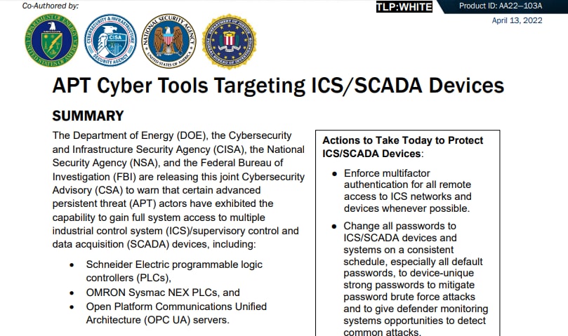 NEW - U.S. warns hackers have developed "cyber tools" to compromise and "gain full access" over command and control networks and systems of certain industrial processes.