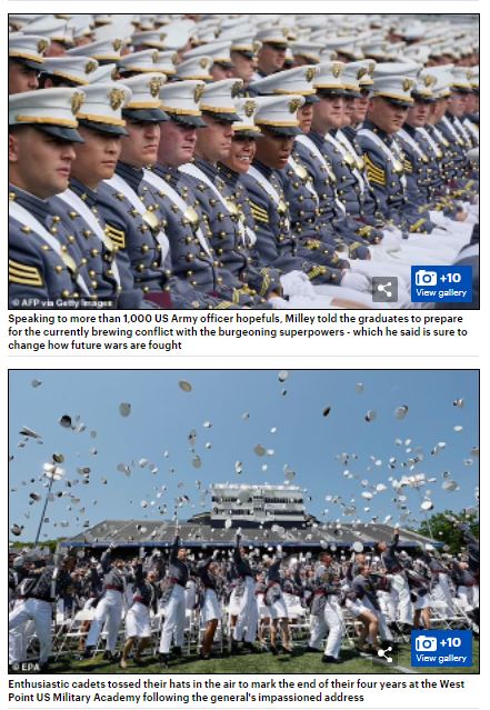 During his address, Milley, the US most senior Armed Forces officers, told grads to prepare for brewing conflict with burgeoning superpowers China and Russia