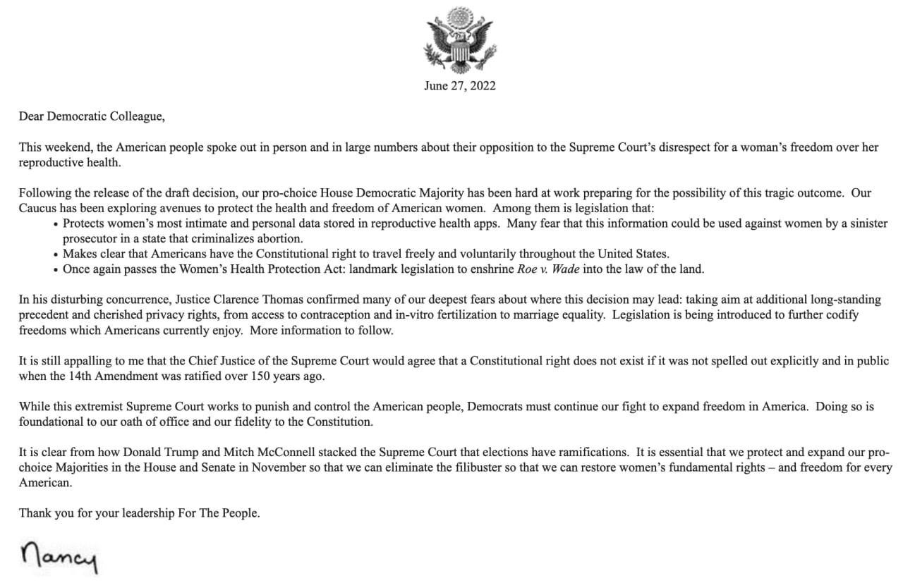 JUST IN - Pelosi, the speaker of the US House, labels the Supreme Court an "extremist" body that punishes the American people.