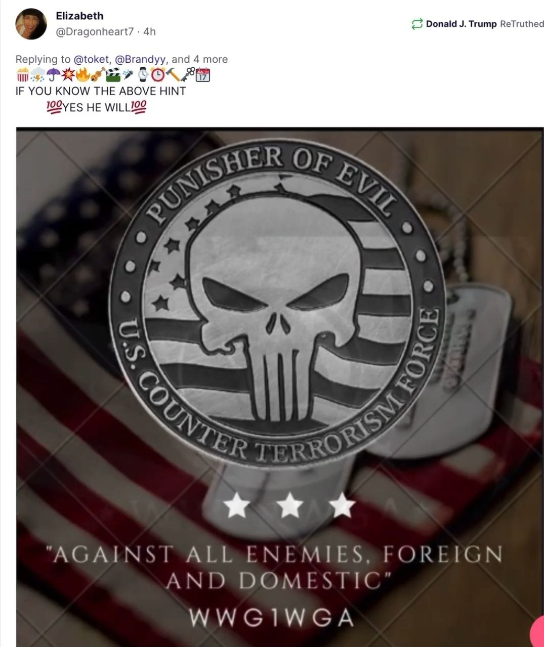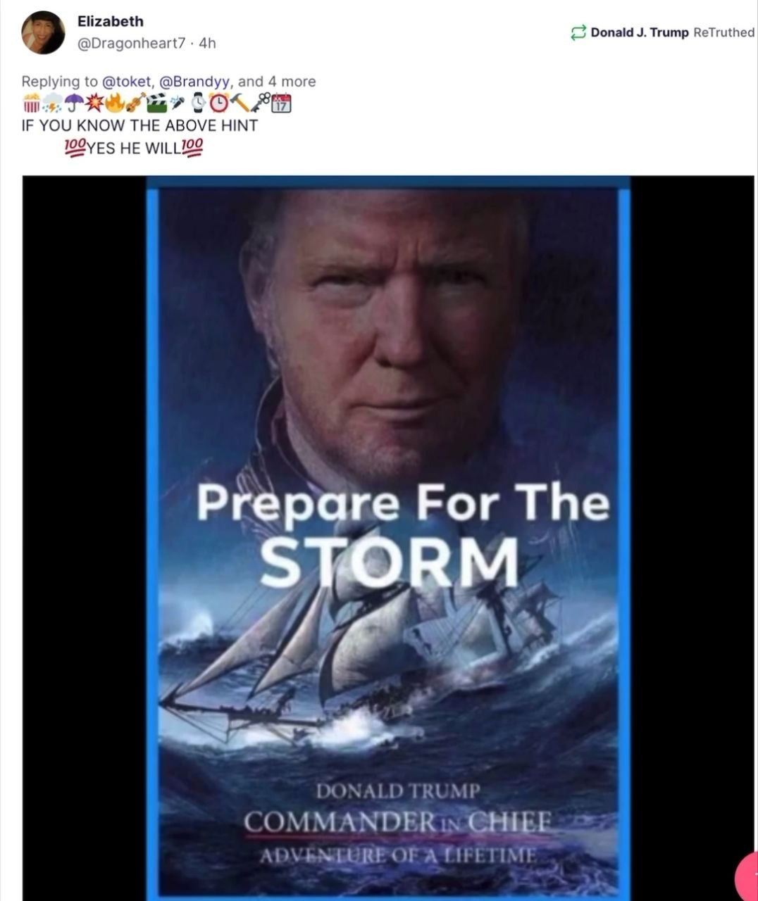 Including plainly suggesting that Trump is Q plus, military justice is coming, and that the storm is coming.