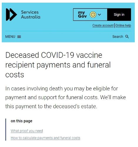 The Services Australia website now has instructions and forms for family members to fill out if the forced experimental COVID Vaccines kill someone in your family.