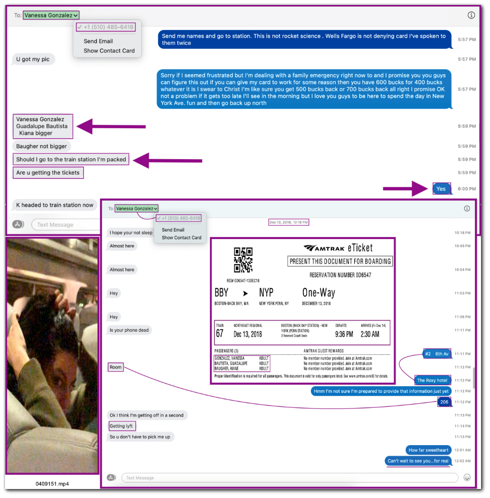 Hunter responds, “Yes” and the financial transaction is confirmed via text messages, emails, copies of the digital tickets, and the females even send him a video of themselves on the train.